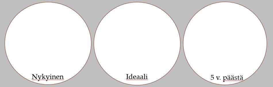 Tavoite on auttaa sinua näkemään mahdollinen arvoristiriita siinä, miten käytät aikaasi erilaisten aktiivisten rooliesi välillä. Pidäthän mielessäsi harjoitusta tehdessäsi, että olet elämässäsi yhdessä vaiheessa tai hetkessä osana laajaa kokonaisuutta: elämässa eri asiat voivat painottua eri kausina, kaikkiin ei välttämättä ole yhtä paljon aikaa.